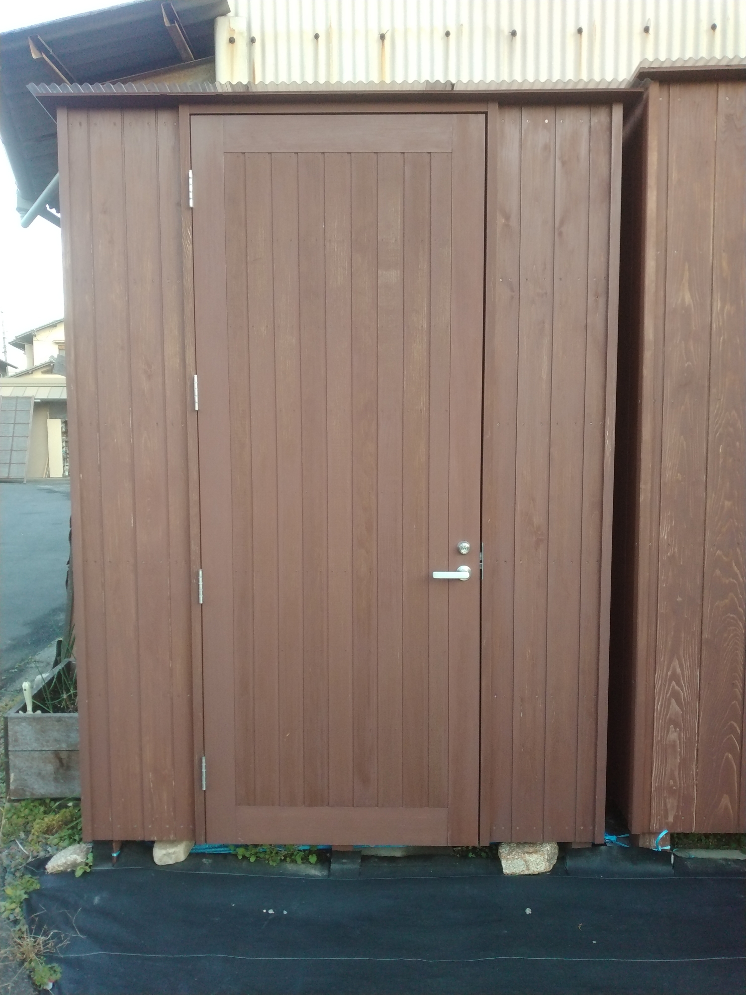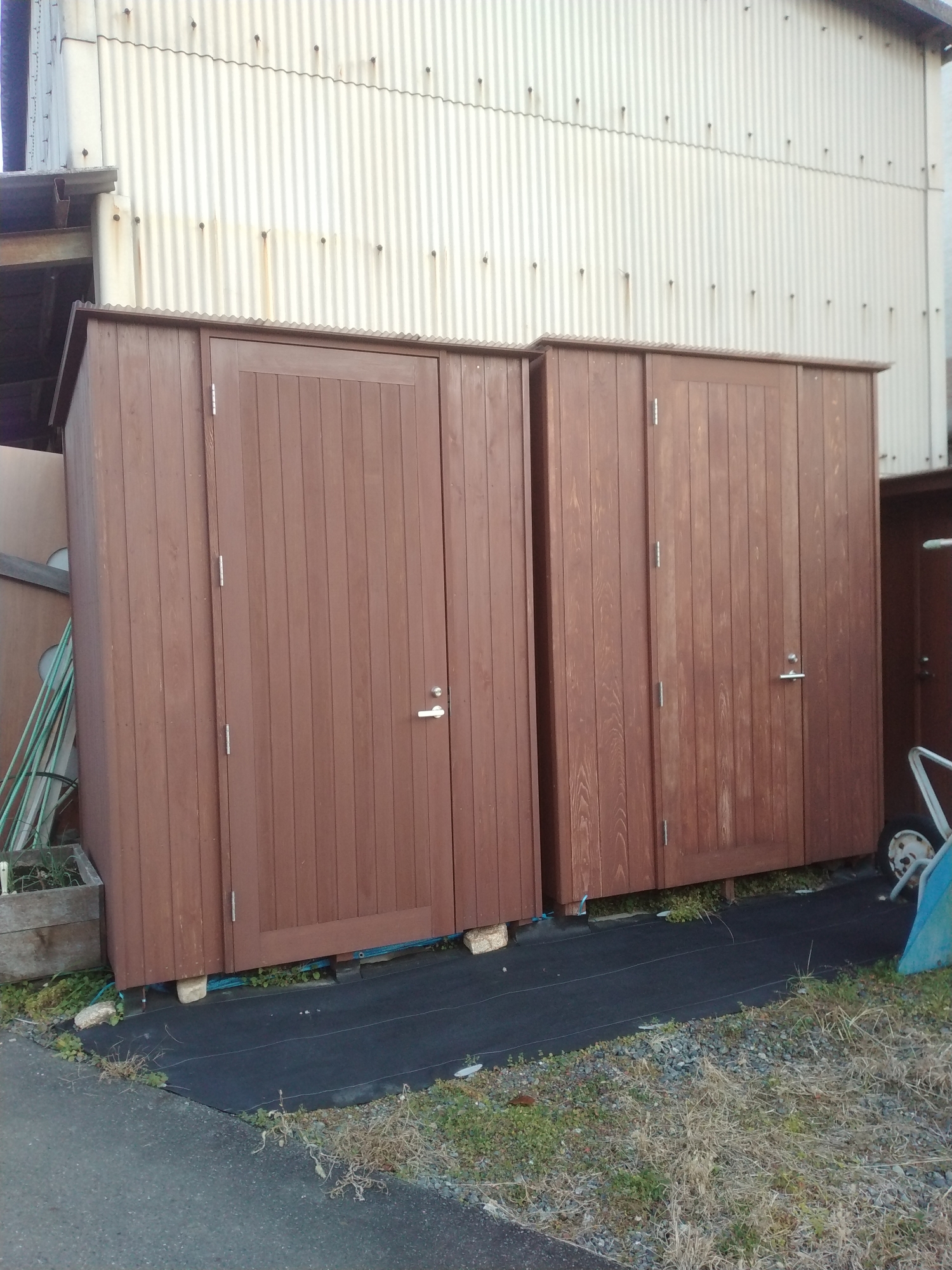 野外物置 大きな物置になります。庭先に出しっ放しにしたくない、農機具や園芸用品(鉢やショベル、ほうきや剪定用のはさみなど)防災用品から日用品のストック、資源ごみ一時置き場など、広い庫内にしっかりと収納できます。物置の中は棚も設置されており、スペースを有効に利用できます。天井までの高さもしっかりあるので、高い棚の上まで有効に利用できます。キャンプ用品、釣り道具、屋外テーブル、椅子など、収納の場所に悩むことなく、趣味の道具を揃えられます。