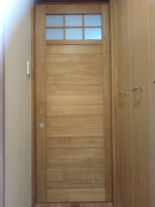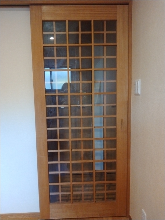 製作建具① 建具制作に関しまして、あらゆるご要望にお応えいたします。事例をご参考にして頂いて、ご希望の建具イメージを思い描いて頂きご相談ください。 K邸 お手洗い室の窓付き建具です。窓がある贅沢な建具です。 K邸 玄関と廊下とを仕切る格子状建具です。玄関の印象アップ。 古民家を改修 和室洋室どちらにも合うカントリー調建具です。 建具中央部にしっかりとしたサイズのガラス、アクリル等をはめ込むこめるタイプです。