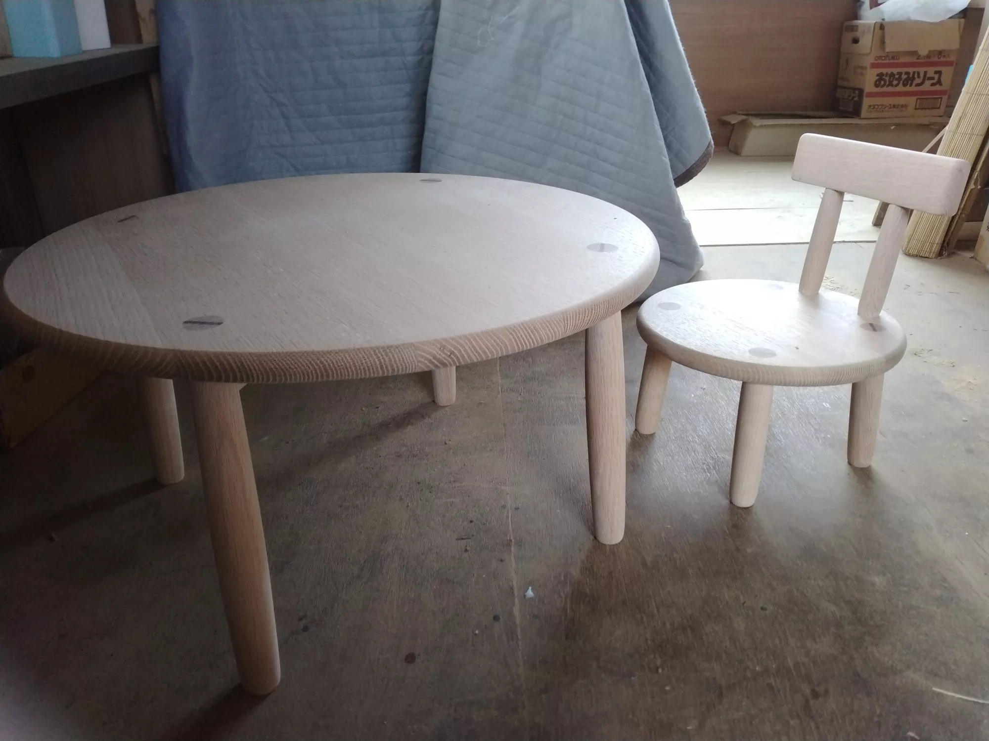 オーク材を惜しみなく使用したこども用テーブルです。 テーブルの高さに合う椅子も二脚ついております。 目にするだけでぬくもりを与えてくれる、そんなフォルムをもつテーブルセットです。 次世代まで引き継がれ長く愛される家具です。